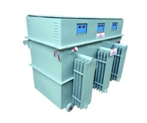An air-cooled servo stabilizer is a type of voltage stabilizer that uses air as a cooling medium to dissipate heat generated during the voltage regulation process. Air Cooled Servo Stabilizers are known for their precise voltage regulation, fast responses, and energy efficiency